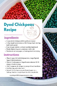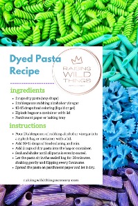 12. Colour pasta or chickpeas for sensory play. You can make necklaces or sort into colours for fine motor skills practice. Take a look at these great recipes from Raising Wild Children.