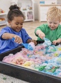 2. Bubble foam (all you need is a tray, water, bubble bath, food colouring and then add toys such trucks, fish, animals). You can also add a brush and clean the toys.